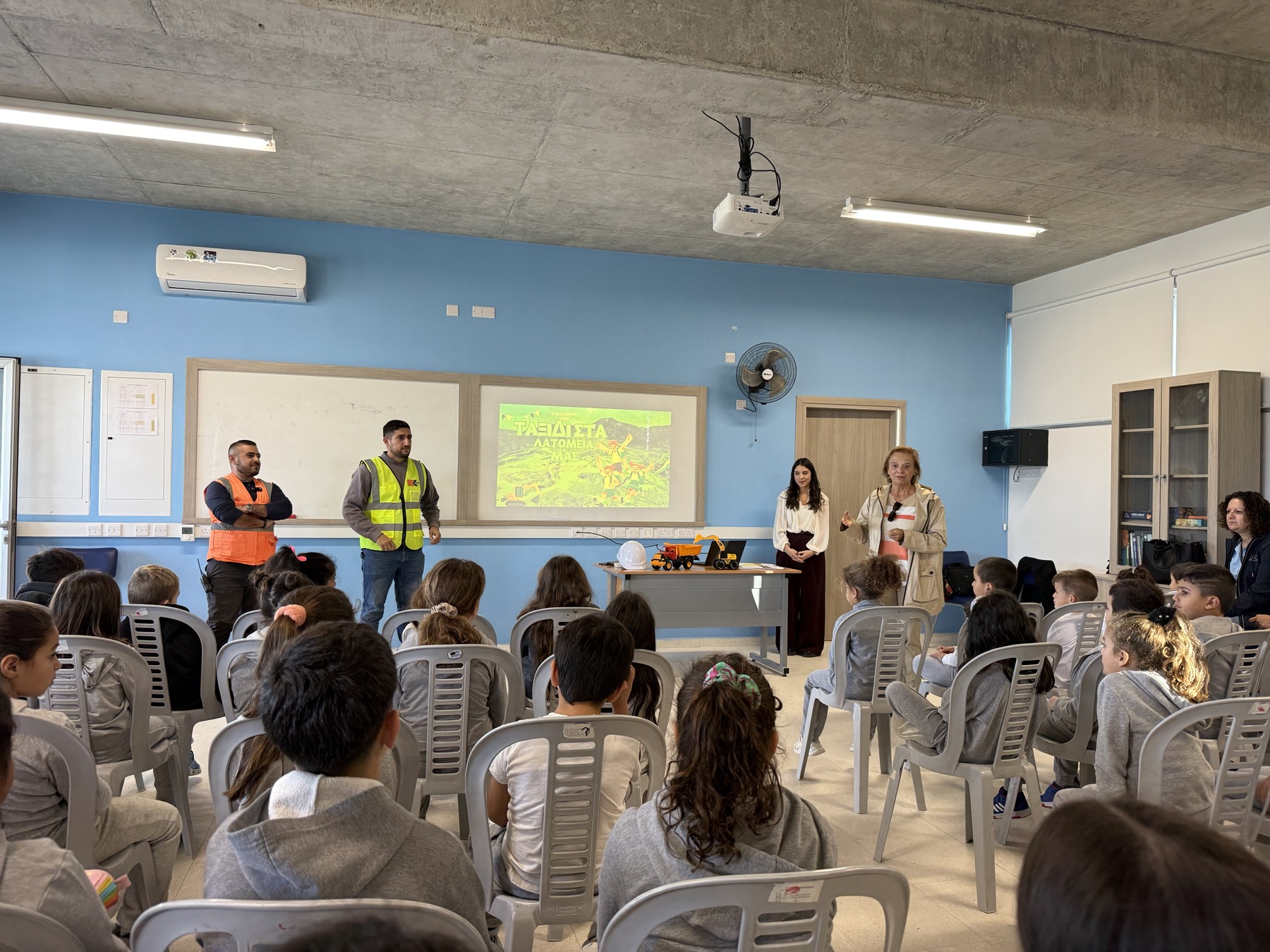 Στην προσπάθειά μας να γνωρίσουμε την γύρω περιοχή του σχολείου μας και τα ιδιαίτερα χαρακτηριστικά της, στις 4 Δεκεμβρίου 2025, διοργανώσαμε σε συνεργασία με τον Παγκύπριο Σύνδεσμο Λατομείων, ένα ολοήμερο εκπαιδιευτικό πρόγραμμα με θέμα: "Ταξίδι στα λατομεία μας". Στο ά μέρος, τα παιδιά, είχαν την ευκαιρία να γνωρίσουν πώς εργάζεται ένα λατομείο και ποια υλικά επεξεργάζεται. Στη συνέχεια, στο β΄ μέρος, επισκέφτηκαν το κοντινό λατομείο της περιοχής μας ΣΚΥΡΑ ΒΑΣΑΣ και στο γ΄ μέρος, με την επιστοφή στο σχολείο, τα παιδιά χρησιμοποίησαν διάφορα υλικά από τα λατομεία για να φτιάξουν διάφορα έργα τέχνης - απλές κατασκευές.